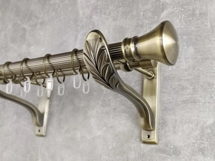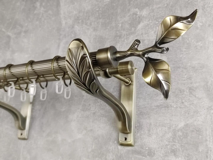 Карниз MStyle металевий для штор дворядний Листок Троянди 25/19мм ретро рифлений 400см Антик (A012696)