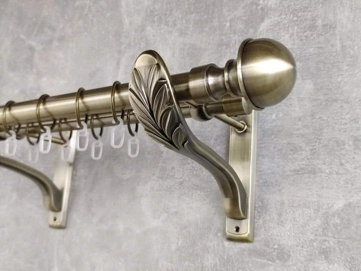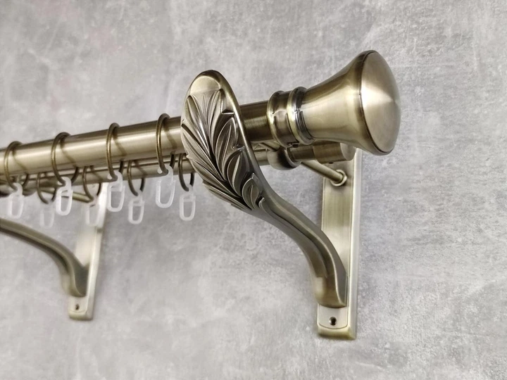 Карниз MStyle металевий для штор дворядний Листок Троянди 25/19мм ретро гладкий 400см Антик (A011033)