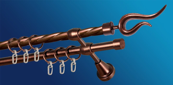 Карниз металевий подвійний кручений PLASTIDEA для штори з гачками (16 - 16) Мідь Віола 160 см.
