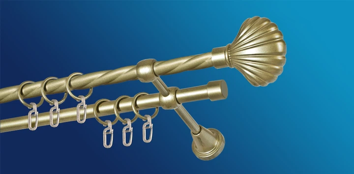 Карниз металевий подвійний кручений PLASTIDEA для штори з гачками (16 - 16) Золото Черепашка 160 см.