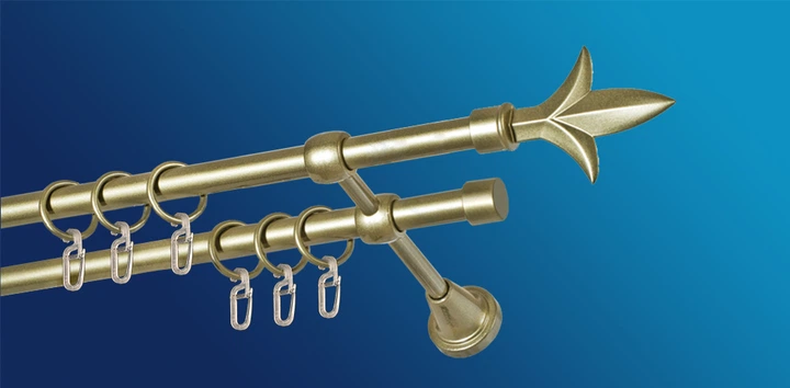 Карниз металевий подвійний PLASTIDEA для штори з гачками (16 - 16) Золото Лілія 140 см.