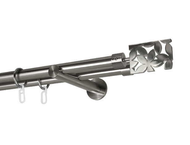 Карниз Orvit металевий дворядний Делія труба гладка 19/19мм кронштейн циліндр 400см Сатин (K020440)