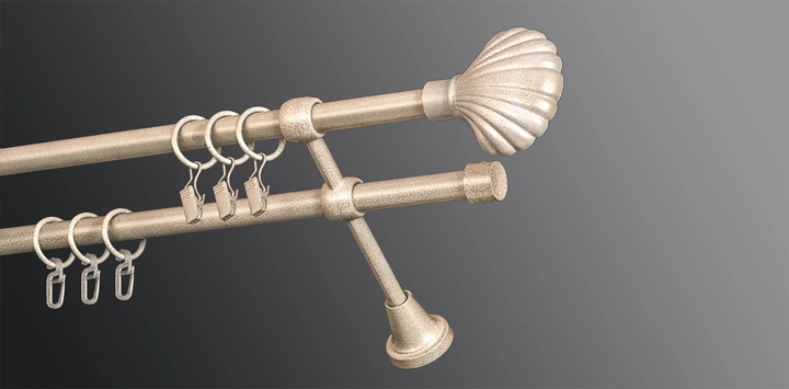 Карниз металевий подвійний кручений PLASTIDEA для штори з гачками (16 - 16) Біле золото Черепашка 160 см.
