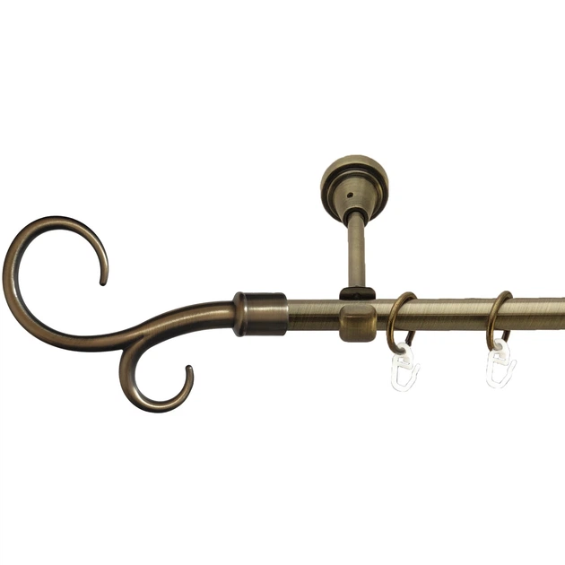 Карниз Orvit Гак Подвійний металевий однорядний відкритий гладка труба кільце металеве Антик 16 мм 240 см (7180765)