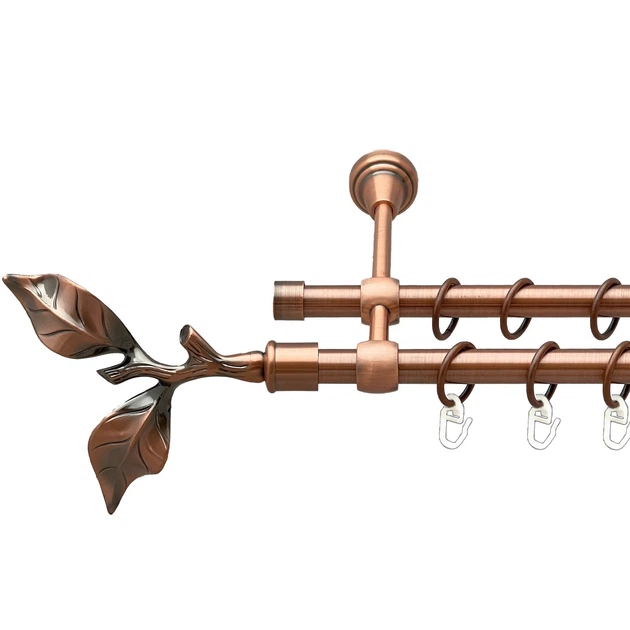 Карниз Orvit Листок Троянди металевий дворядний литий гладка труба кільце металеве Мідь 16\16 мм 120 см (00-00019608)