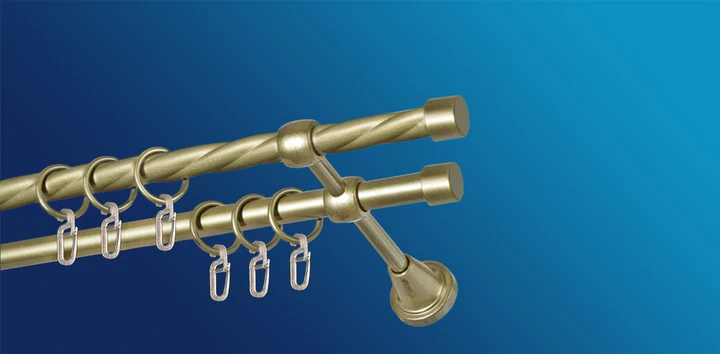 Карниз металевий подвійний кручений PLASTIDEA для штори з гачками (16 - 16) Золото Віола 180 см.