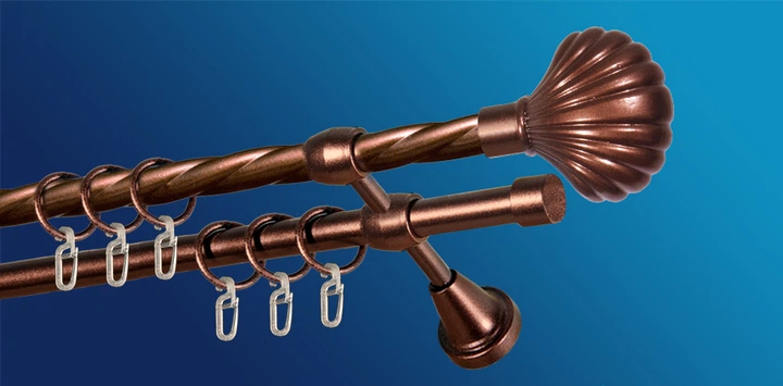 Карниз металевий подвійний кручений PLASTIDEA для штори з гачками (16 - 16) Мідь Черепашка 180 см.
