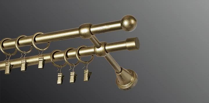 Карниз металевий подвійний PLASTIDEA для штори з прищіпками (16 – 16) Золото Гак 140 см.