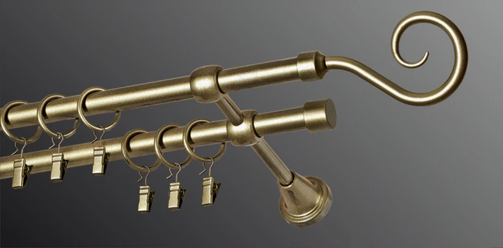 Карниз металевий подвійний PLASTIDEA для штори з прищіпками (16 – 16) Антик Гак 140 см.