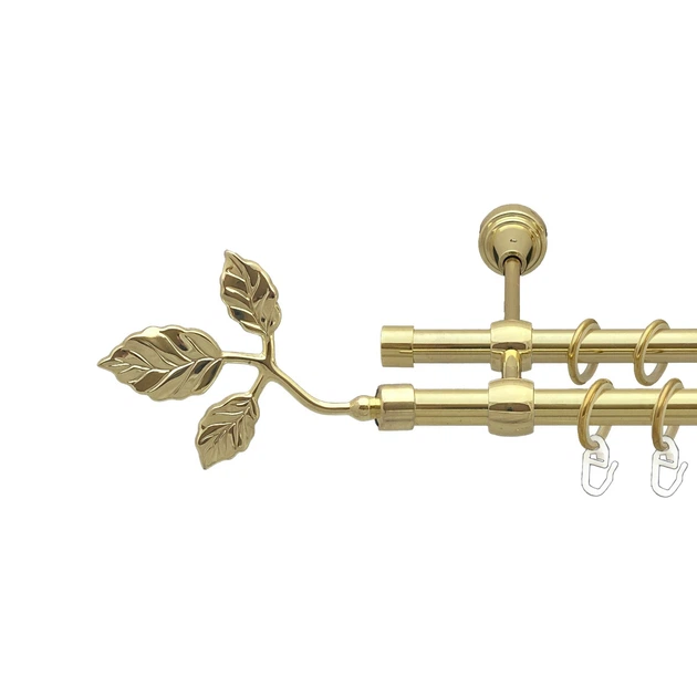 Карниз Orvit Листок Троянди металевий дворядний відкритий скручена труба кільце металеве Золото 16\16 мм 160 см (00-00024940