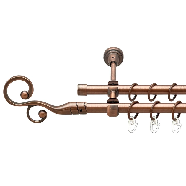 Карниз Orvit Флорес металевий дворядний відкритий гладка труба кільце металеве Мідь 16\16 мм 120 см (00-00020763)