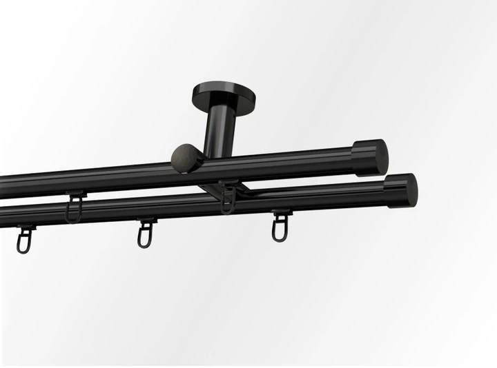 Карниз Quadrum Square line Заглушка 130 см подвійний чорний глянець (тримач 14-17 см) порошкове покриття