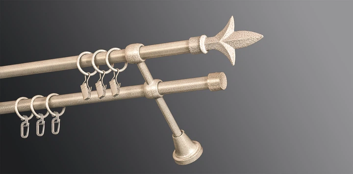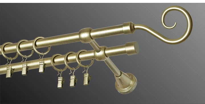Карниз металевий подвійний PLASTIDEA для штори з прищіпками (16 – 16) Золото Гак 160 см.