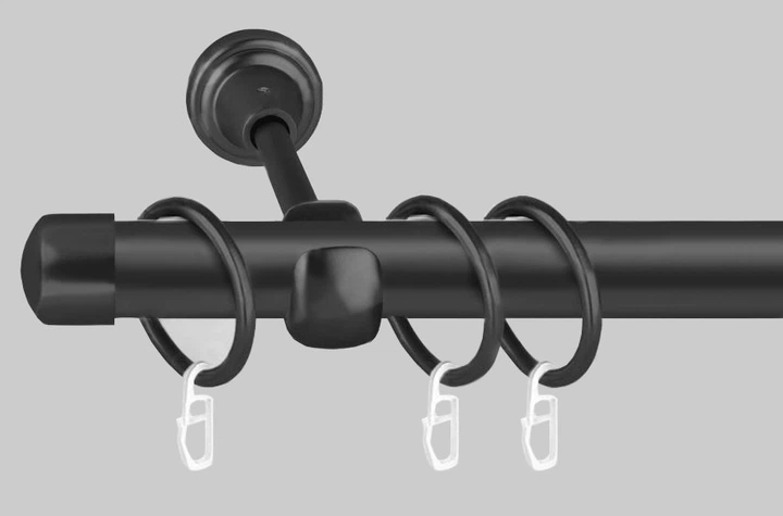 Карниз для штор Decolux металевий однорядний 19 мм Заглушка Чорний матовий 200 см