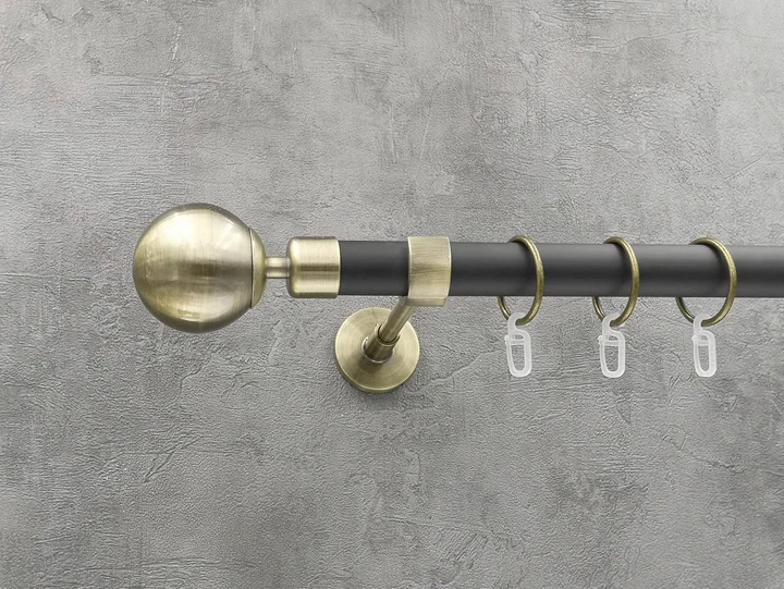 Карниз Quadrum Куля 160 см одинарний антик/чорний матовий модерн 25 мм гладка (кільця з гачками)