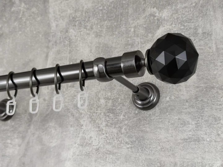 Карниз MStyle металевий для штор однорядний Борджеза 25мм гладкий 200см Чорний Сталь (A013155)