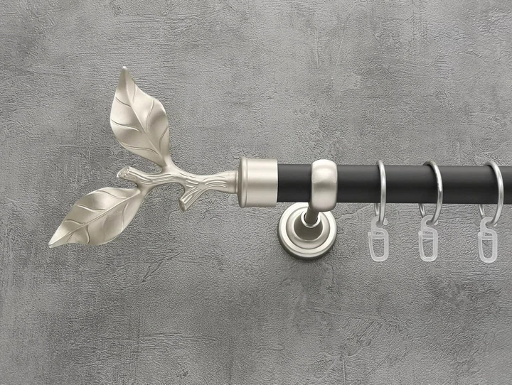 Карниз Quadrum Лист рози 300 см одинарний сатин/чорний матовий відкритий 25 мм гладка (кільця з гачками)