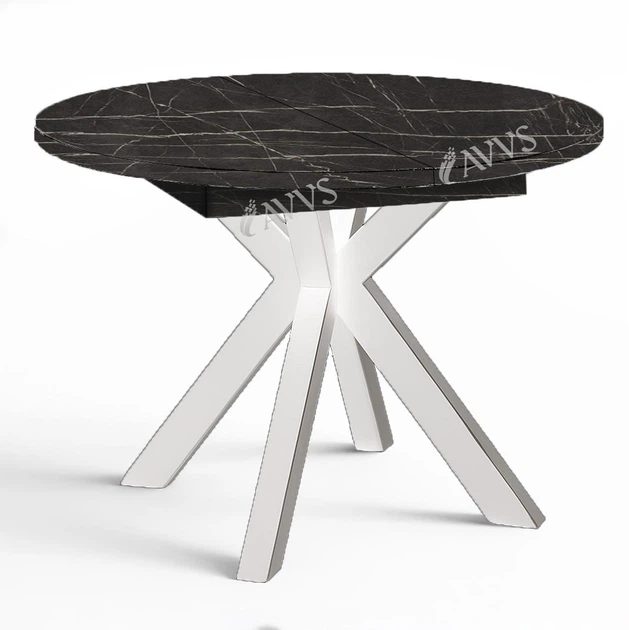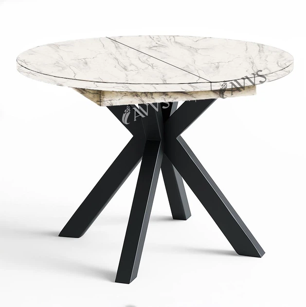 Стіл кухонний розкладний RoMax Oscar Slide 80x80 см (110x80см) Loft Мармур Кристал/Чорний