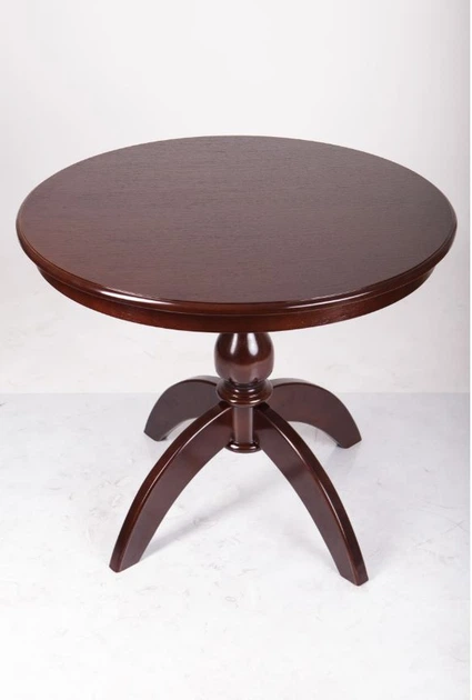 Круглий стіл на одній опорі D90 із натурального дерева нерозкладний горіх темний