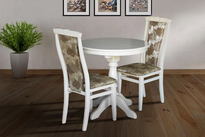 Круглий стіл D80 зі стільцями 2 шт для маленької кухні білий