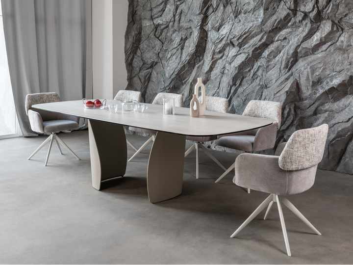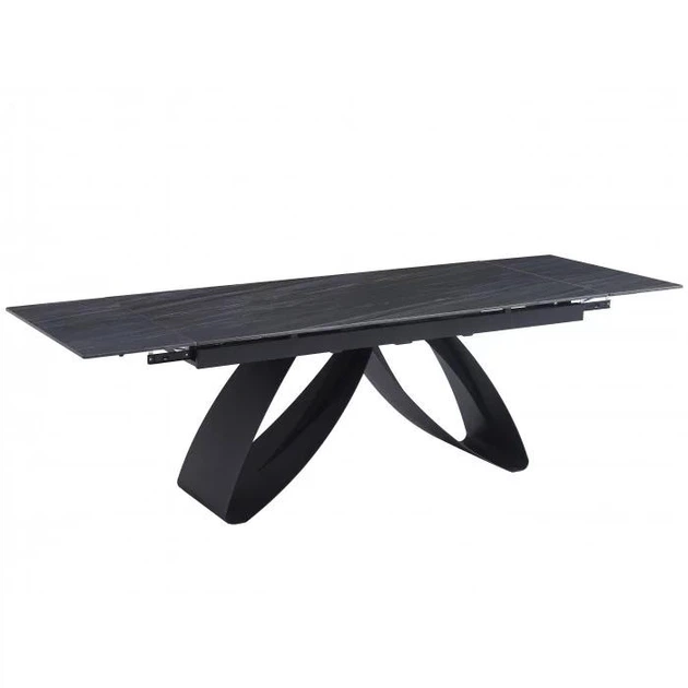 Стіл обідній розкладний керамічний Інтарсіо Кіа колір піщаний камінь / чорний каркас 180(260)*90 см
