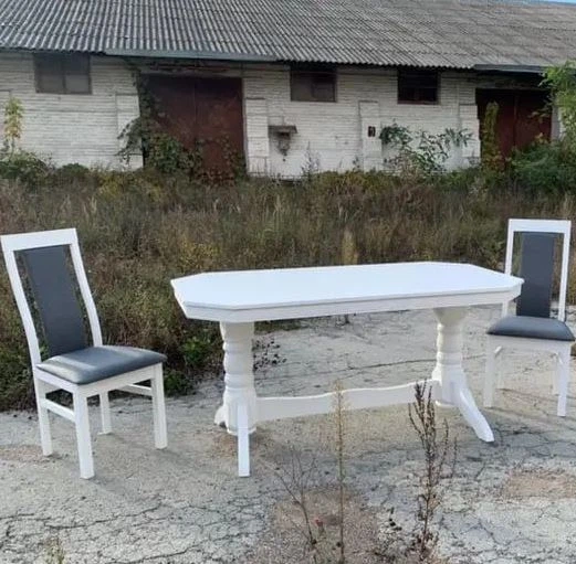 Комплект обідній стіл для фігурної спинки 90х160+40 зі м'якими стільцями 6 шт дерев'яний лак білий