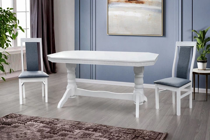 Комплект обідній стіл для вітальні з фігурною спинкою 90х160+40 зі м'якими стільцями 6 шт дерев'яний лак білий