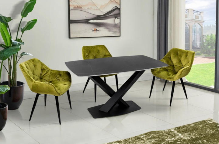 Стіл обідній розкладний GREYSON CERAMIC 160(240)*90 сірий мат/чорний Intarsio