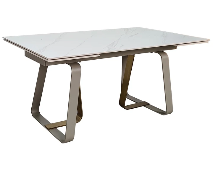 Стіл обідній розкладний керамічний Флай Дебра140 см білий матовий / чорний каркас