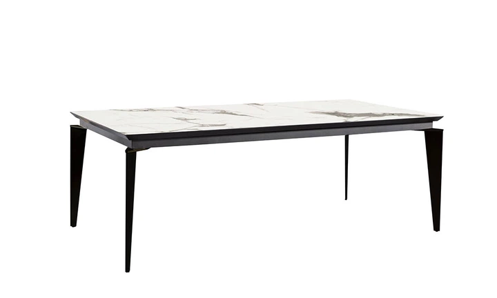 Стіл обідній розкладний в вітальню, кухню Cassino II 160x90(220) італійська кераміка, скло чорний/скло, МДФ білий Signal