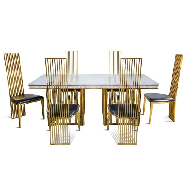 Комплект Стіл та Стільці 6шт Just Relax “Гватемала” (200х100х75см) Керамічний Золотий