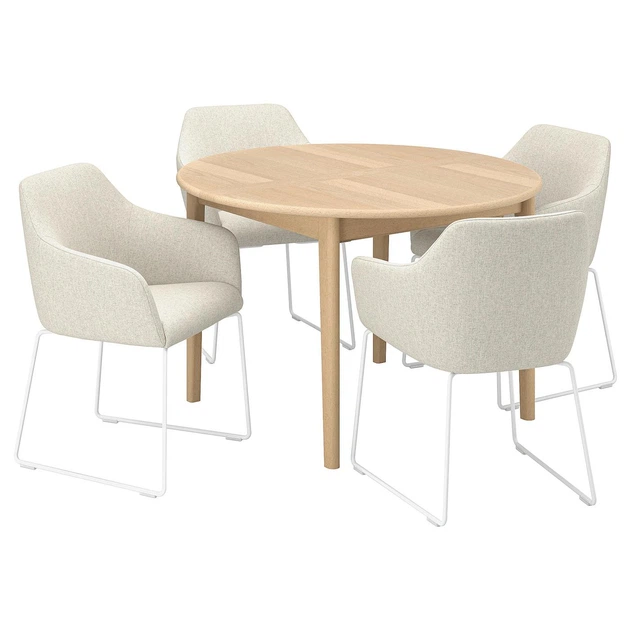 Стіл + 4 стільці з підлокітниками ІКЕА MRBYLNGA / GRNSTA 145 см (s39569312)
