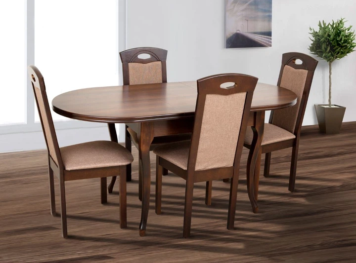Комплект меблів стіл розкладний дерев'яний 81х126+34 + стільці м'які 4 шт горіх темний