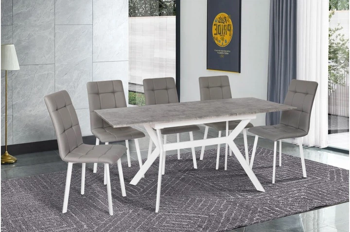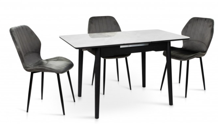 Комплект Стіл та Стільці Just Relax “Florence” (140-220х90см) Керамічний Білий 2 Стільці "Padua" Графітовий та 2 Стільці "Pa