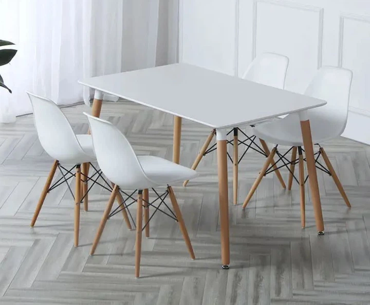 Комплект обідній стіл прямокутний нерозкладний 70х100 МДФ білий + 4 стільці пластик білий