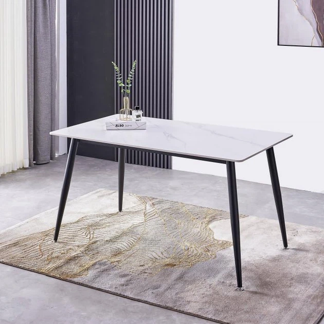 Стіл обідній нерозкладний керамічний Інтарсіо Кіотто білий глянець / чорний каркас 140*80 см