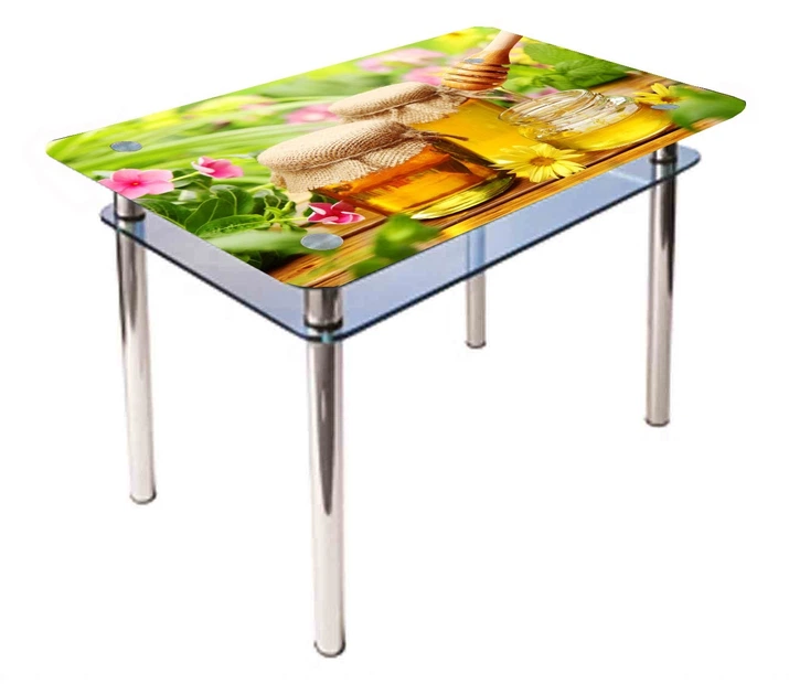 Обідній скляний стіл Glass Antonik КС-1 бежевий з фотодруком №325 (1000х600х750 мм)