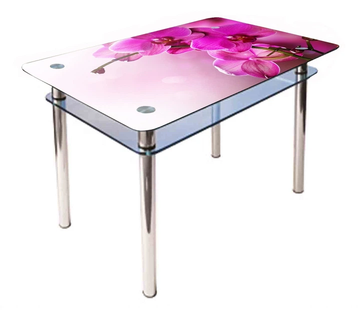 Обідній скляний стіл Glass Antonik КС-1 рожевий з фотодруком №58 (1000х600х750 мм)