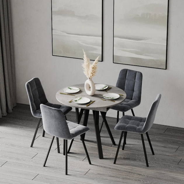 Обідній стіл MebliRoMax Lite Slide D1100 Бетонний камінь /Чорний (000086691)