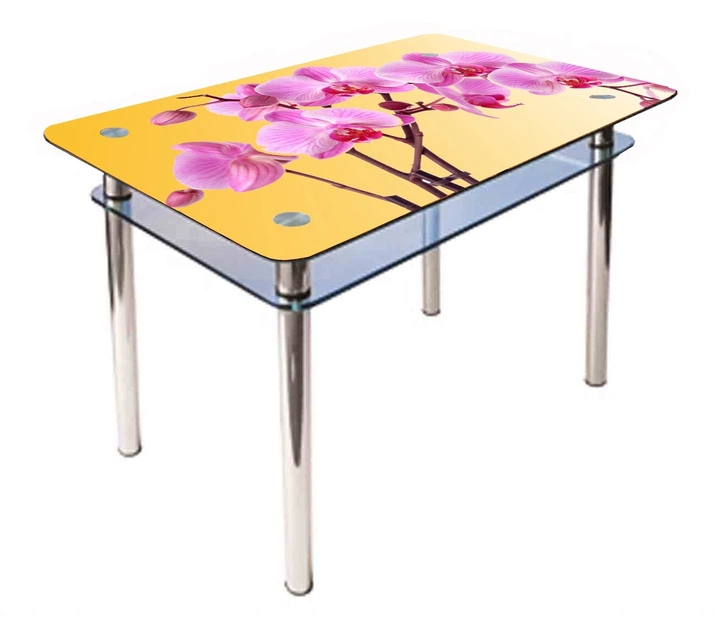 Обідній скляний стіл Glass Antonik КС-1 жовтий з фотодруком №301 (1000х600х750 мм)