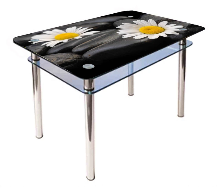 Обідній скляний стіл Glass Antonik КС-1 чорний з фотодруком №100 (1000х600х750 мм)