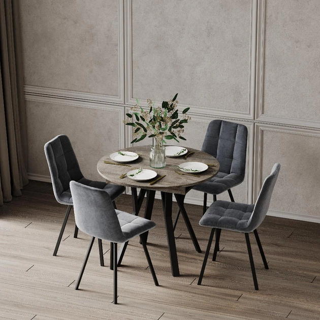 Стіл обідній MebliRoMax Lite Slide D800 Бетонний камінь /Чорний (УТП016860)