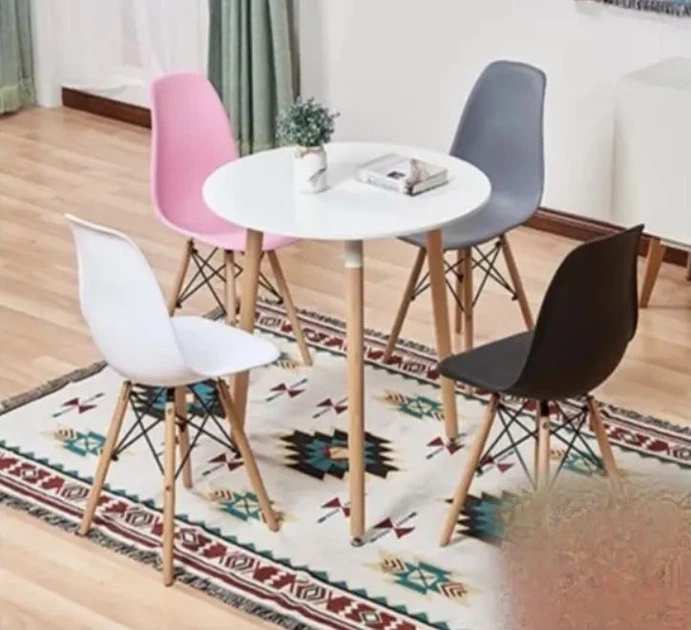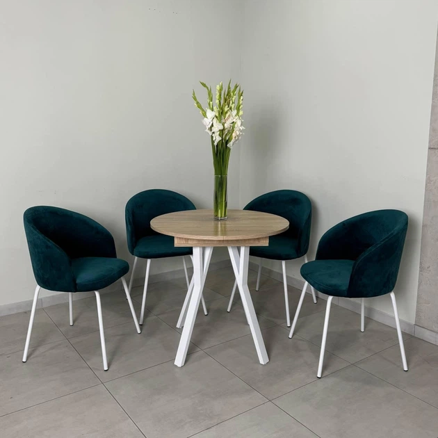 Комплект кухонний стіл круглий нерозкладний D60 МДФ білий + стільці 4 штуки