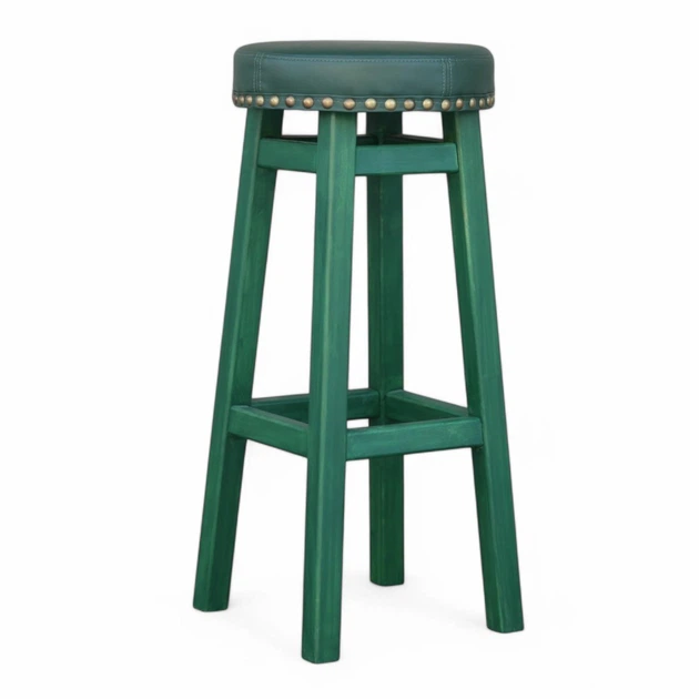 Барний стілець Роккі 79см Студія Дерева Високий дерев'яний табурет з м'яким сидінням Колір зелений РЗ-75