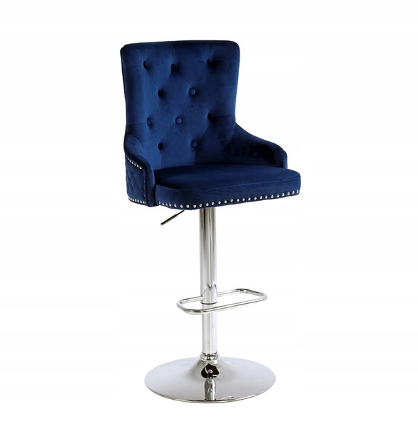 Барний стілець розкішний велюровий ROYAL Синій срібний стілець з гламурним декором лев