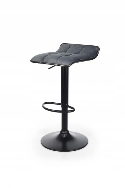 Барний стілець Оксамитовий VIA Сірий Лофт З Чорною Основою Та Регулюванням Висоти