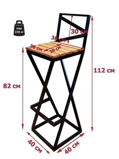 Барний стілець GoodsMetall у стилі ЛОФТ 750х350х350 БС249
