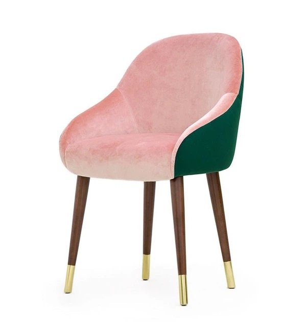 Барний стілець на кухню MeBelle POURVIE 55 х 58 х 85 см в кафе, ресторан, пудовий рожевий + зелений велюр