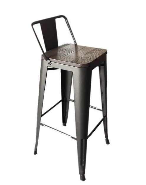Стілець барний Толікс Вуд SDM, метал, сидіння дерево, глянцевий чорний, висота 76 см