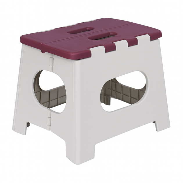 Табурет розкладний з ручкою R35100-S пластик 33х31 см Сірий з бордовим